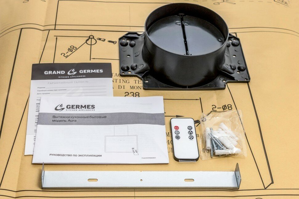 When using a hood without connecting to a ventilation shaft in recirculation mode, you must additionally purchase a set of Germes Type 4 carbon filters; number of lighting lamps: 2; power of each lamp: 1.