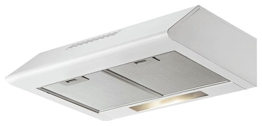Form factor: flat, width: 60 cm, depth: 50 cm, operating modes: exhaust / circulation, maximum productivity: 390 m³/hour, lighting type: incandescent, maximum noise level: 45 dB, installation width: 60 cm