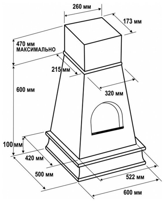 Form factor: dome, width: 90 cm, operating modes: exhaust / circulation, maximum productivity: 360 m³/hour, installation type: wall-mounted, filter: grease, control type: mechanical, lighting type: incandescent lamp