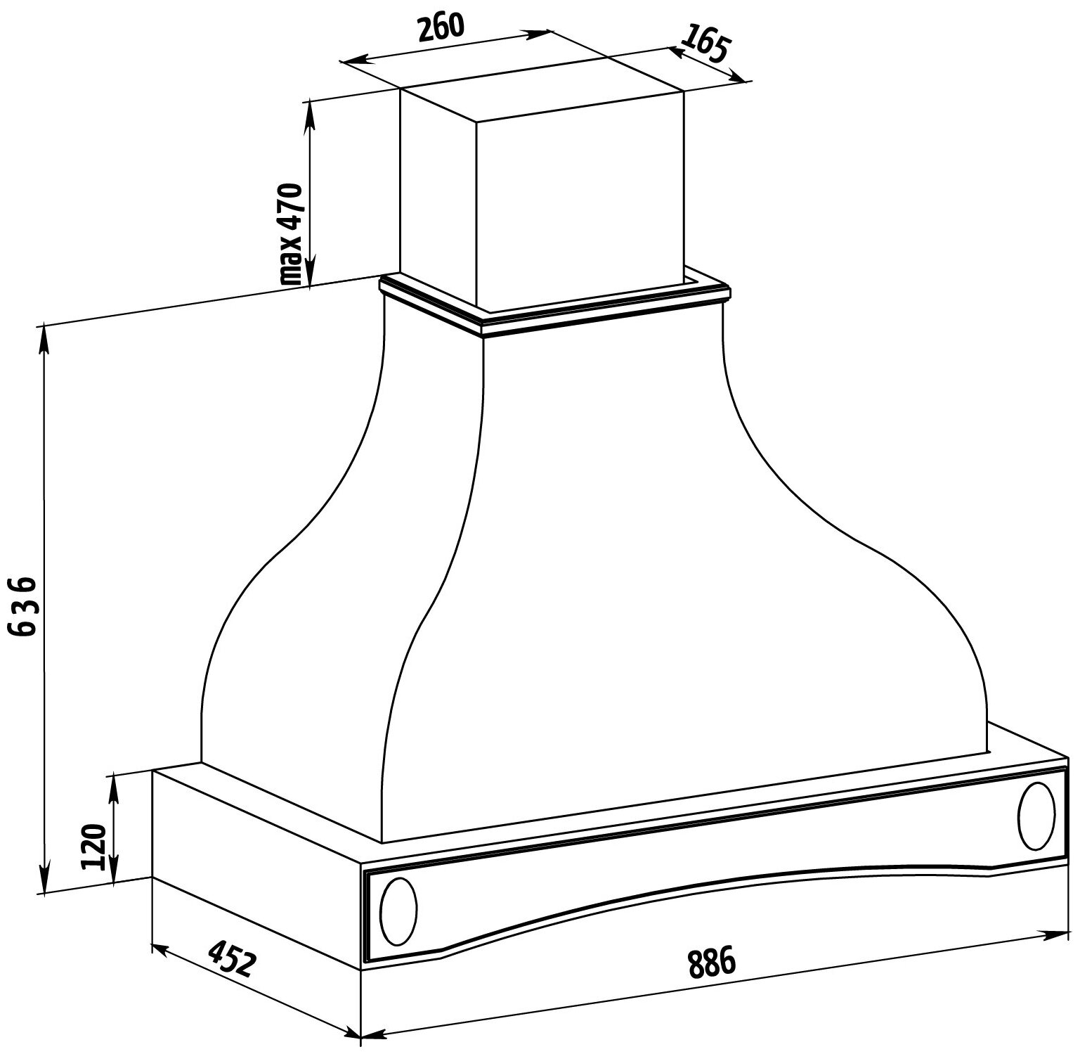 Form factor: dome, operating modes: exhaust / circulation, maximum productivity: 500 m³/hour, installation type: wall-mounted, lighting type: halogen lamp, installation width: 90 cm, additional functions: intensive