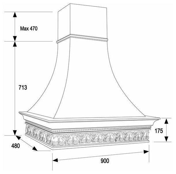 Form factor: dome, width: 60 cm, depth: 48 cm, operating modes: exhaust / circulation, maximum productivity: 550 m³/hour, installation type: wall-mounted, filter: grease, control type: mechanical, lighting type: laminated