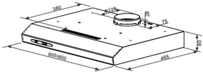Form factor: dome, operating modes: exhaust / circulation, maximum productivity: 500 m³/hour, installation type: wall-mounted, lighting type: halogen lamp, installation width: 90 cm, additional functions: intensive