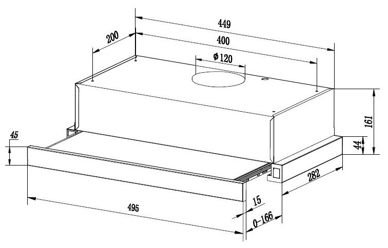 Form factor: dome, operating modes: exhaust / circulation, maximum productivity: 500 m³/hour, installation type: wall-mounted, lighting type: halogen lamp, installation width: 90 cm, additional functions: intensive