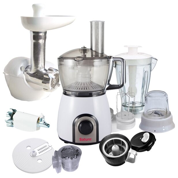 Type: food processor, power: 1200 W, bowl capacity: 1.50 l, grater, juicer: no, meat grinder, blender, features: pulse mode, design features: rubberized legs
