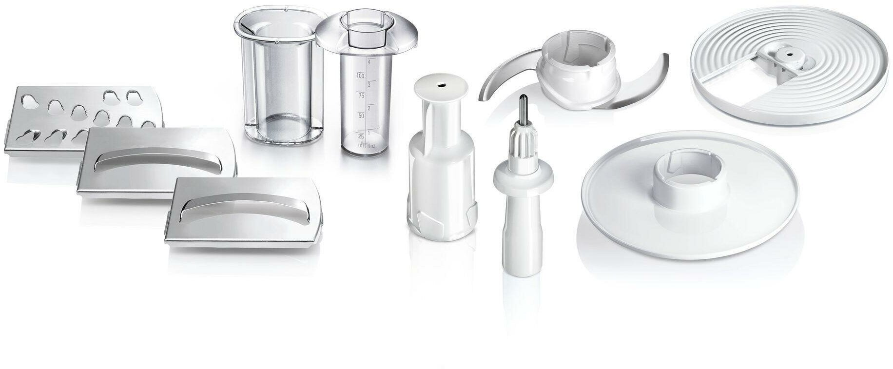 Type: food processor, power: 500 W, bowl capacity: 2 l, grater, dough attachment, juicer: citrus, blender, features: pulse mode, design features: rubberized feet, number of speeds