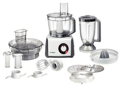 Type: food processor, power: 1200 W, bowl capacity: 3.90 l, grater, dough attachment, juicer: citrus/universal, blender, features: pulse mode, design features: compartment for power cord,