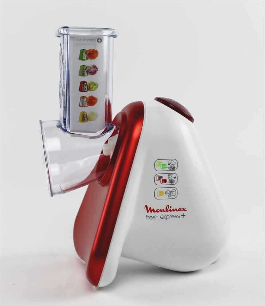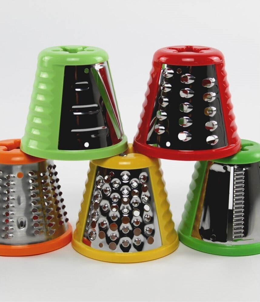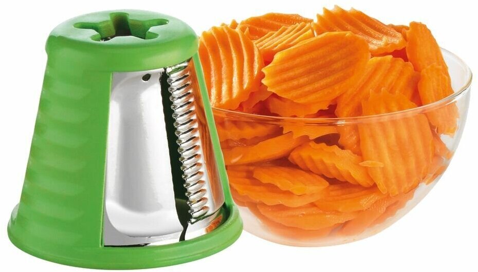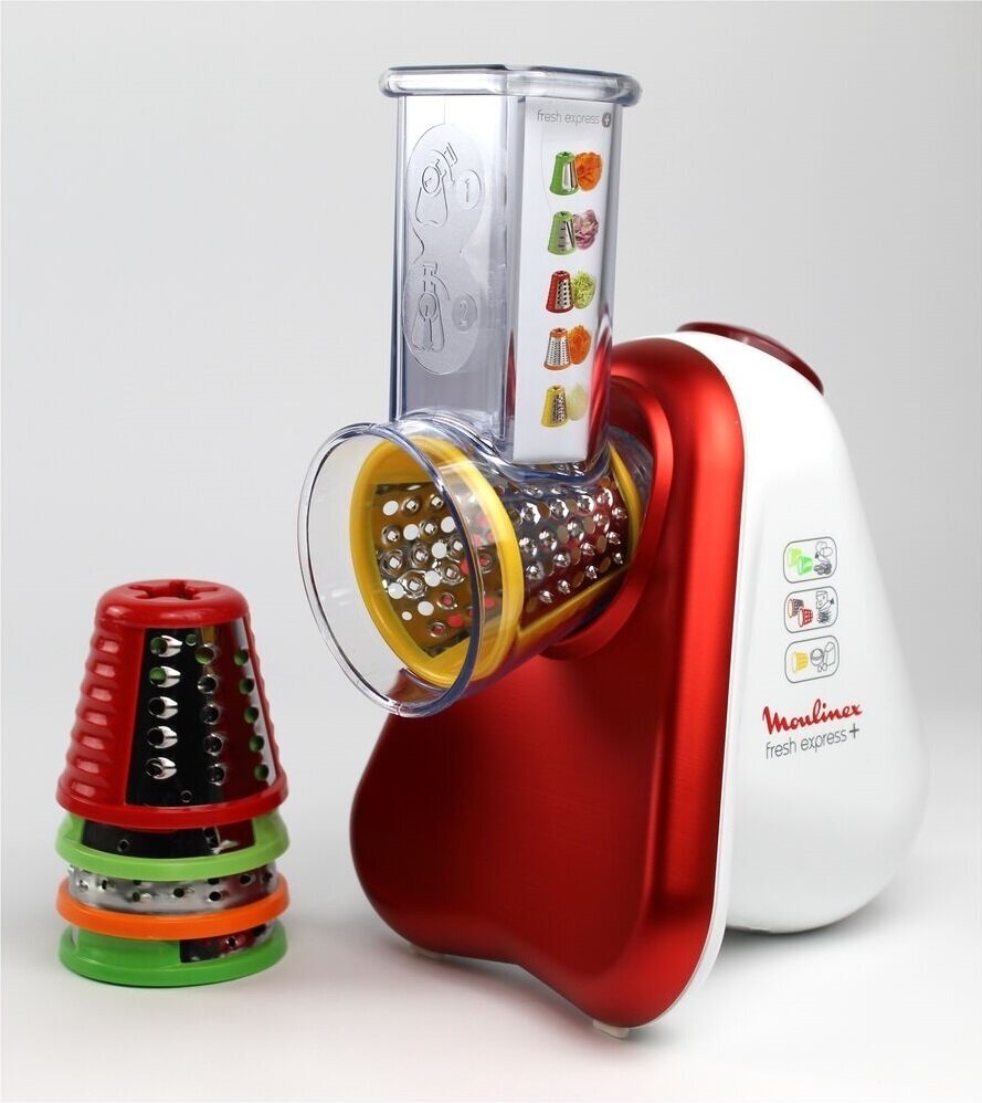 Grater productivity - 250 g/min, system for easy replacement of nozzles, nozzles are made of steel and plastic, nozzles are stored on the body