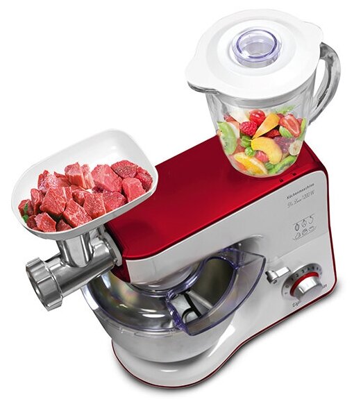 Planetary mixer, whisk attachment, dough hook, mixing attachment, blender, meat grinder attachment, attachments for making kolbay and sausages.