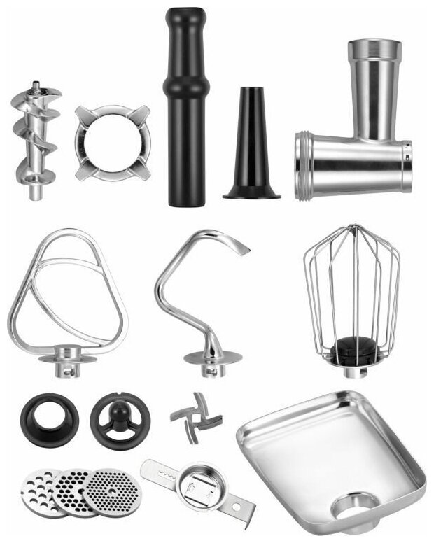 Type: food processor, power: 1200 W, bowl material: stainless steel, bowl capacity: 4.50 l, dough attachment, juicer: no, meat grinder, blender, features: pulse mode, design features: rubberized