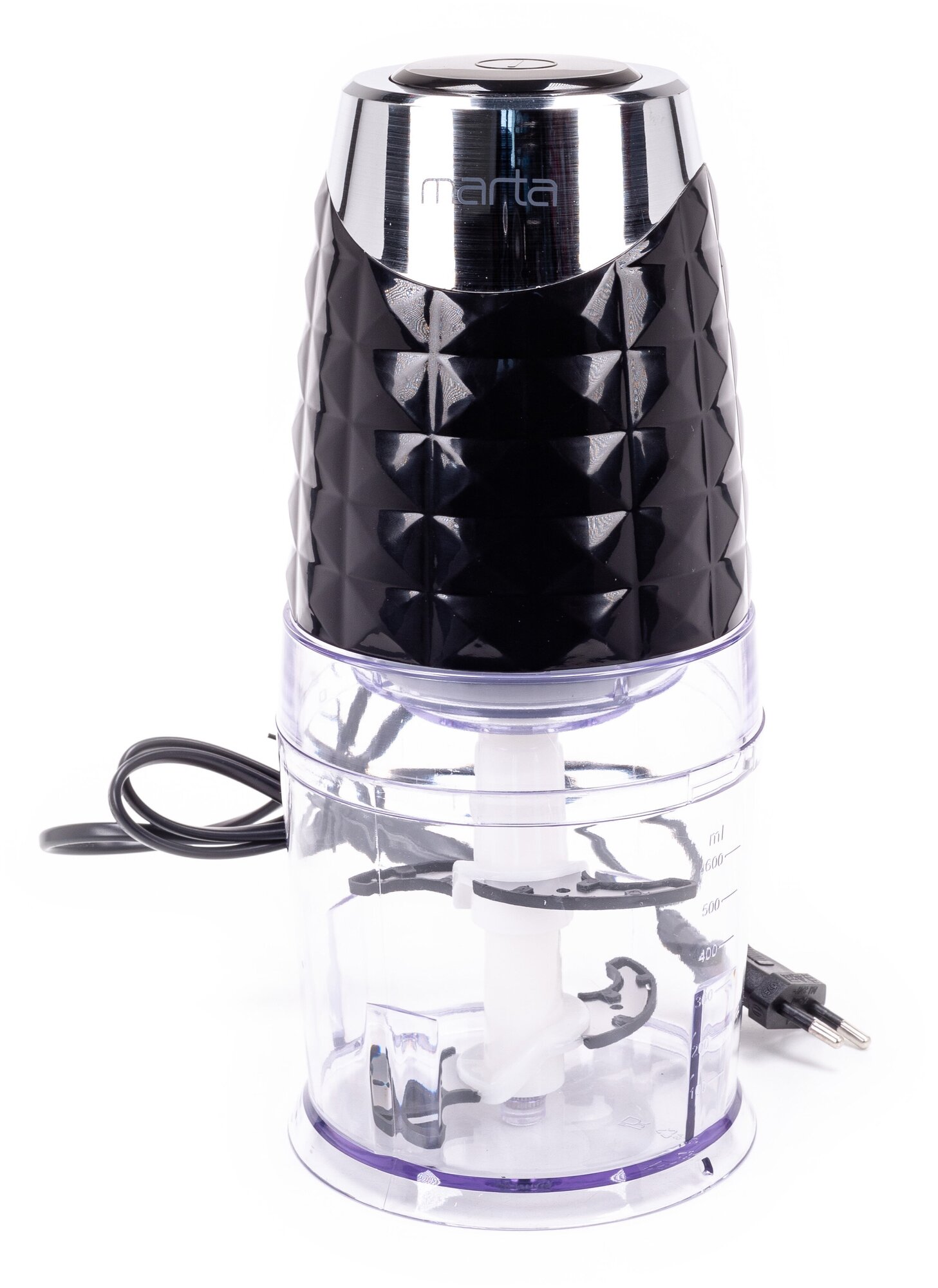 Type: chopper, power: 500 W, bowl material: plastic, bowl capacity: 0.60 l, juicer: no, number of speeds: 1