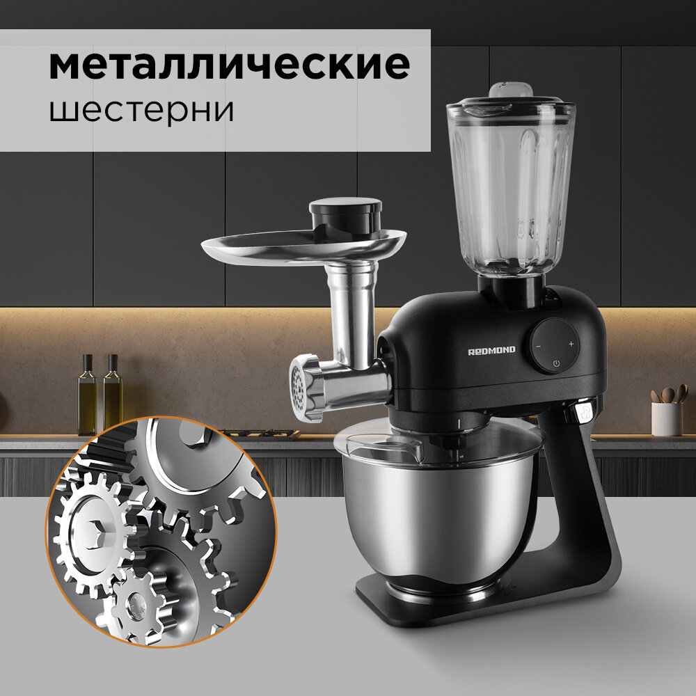 Nozzle for preparing sausages; whisk attachment; nozzle for kneading dough; blender jug; bowl with lid; pusher; grater - 3; whipping attachment; kebbe attachment