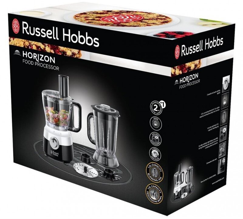 Type: food processor, power: 500 W, bowl capacity: 2 l, grater, dough attachment, juicer: citrus, blender, features: pulse mode, design features: rubberized feet, number of speeds