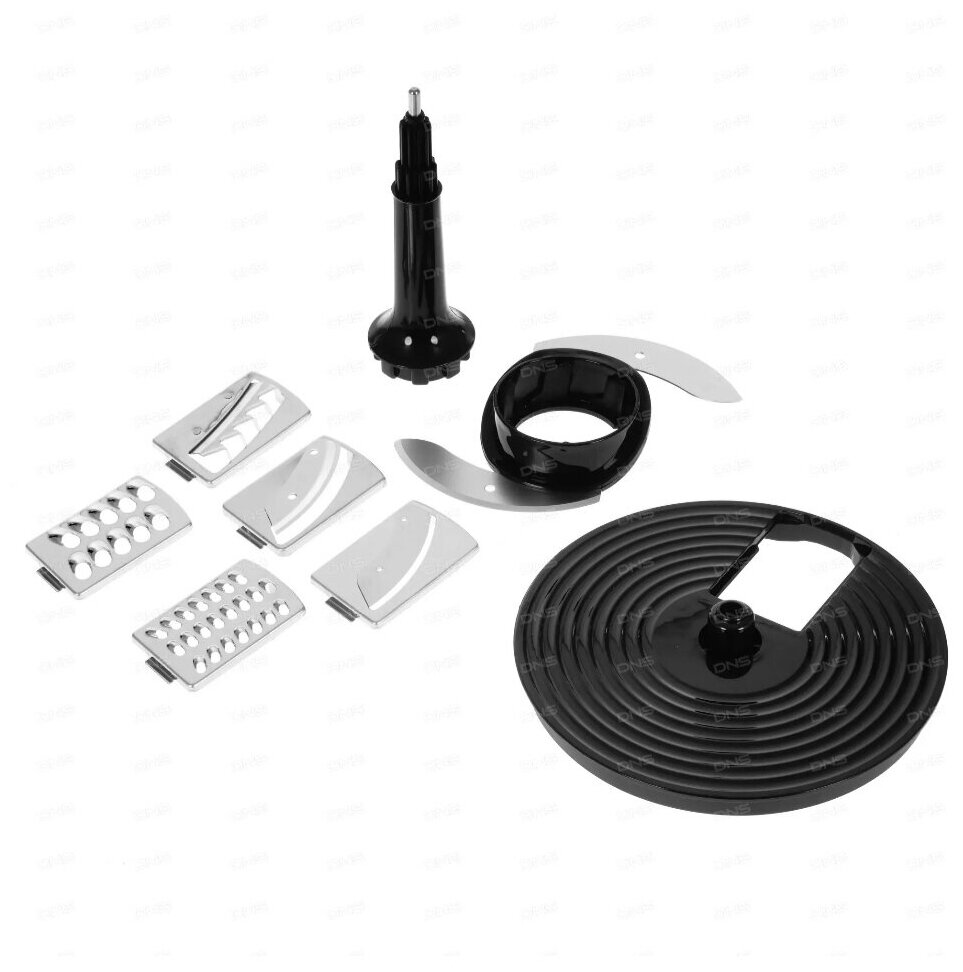 Utility knife, dough knife, french fry disc, double-sided disc for fine slicing and shredding, double-sided disc for coarse cutting and shredding. Overload protection, from