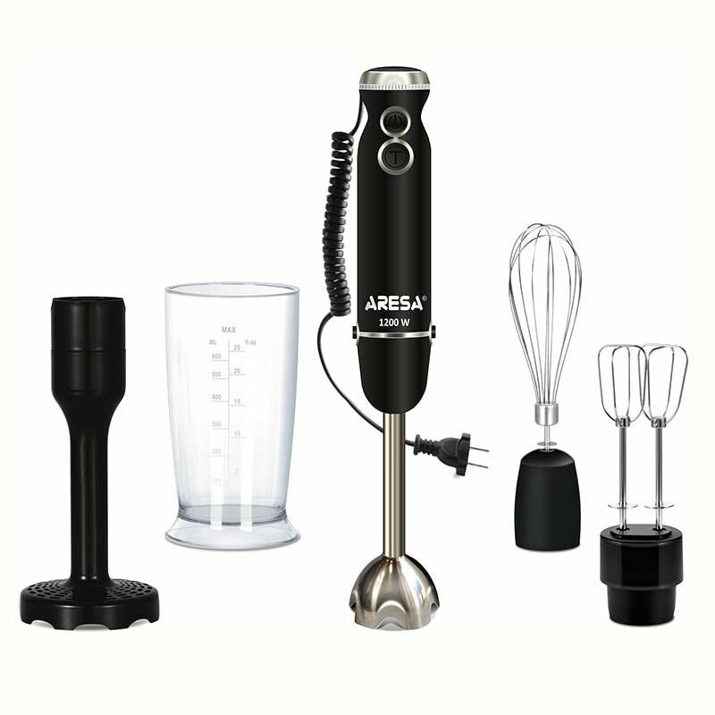 Design features: Protective cover for the bowl, rubberized feet, LED operation indicator, button for quick removal of attachments, rubberized handle