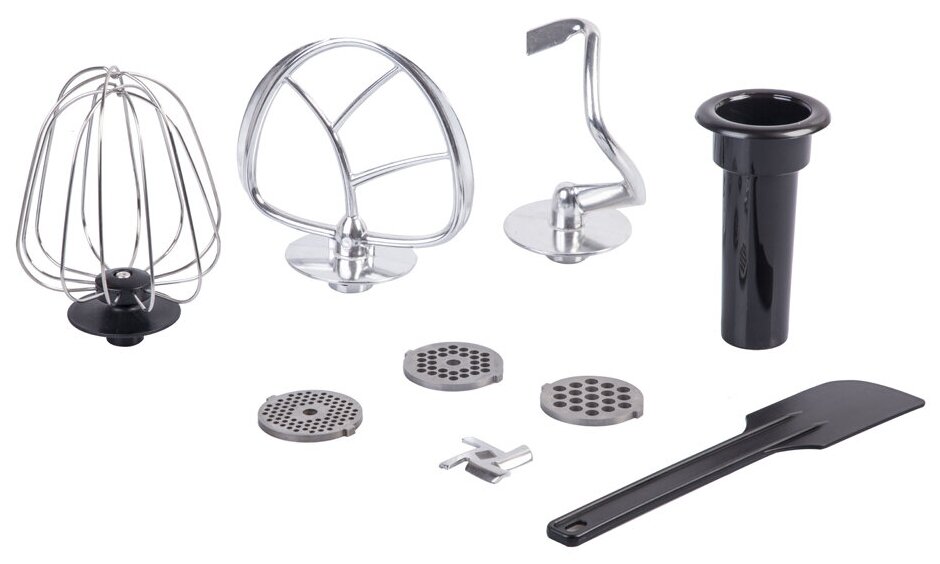 Type: food processor, power: 1300 W, bowl material: stainless steel, bowl capacity: 6.50 l, dough attachment, juicer: no, meat grinder, blender, features: pulse mode, design features: rubberized