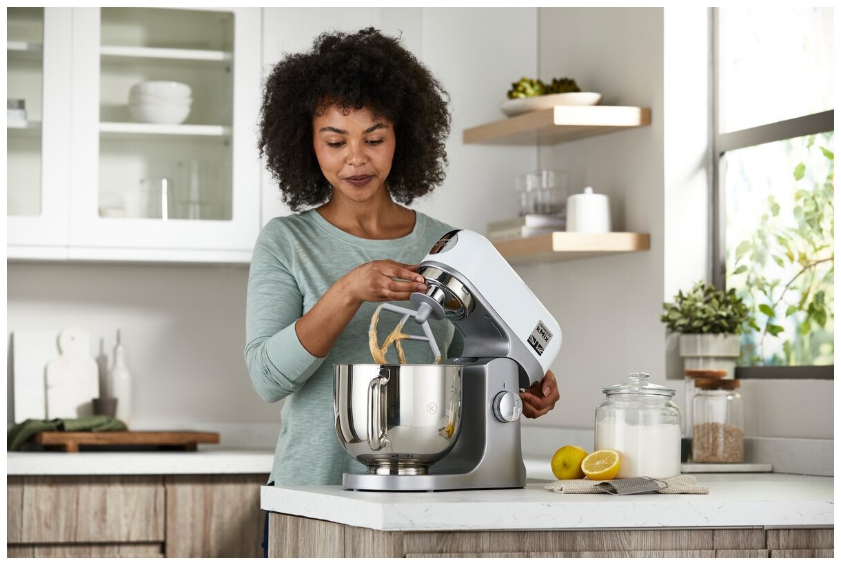 - food processor;<br/> - K-shaped nozzle;<br/> - dough hook;<br/> - whisk;<br/> - drive for connecting the bowl;<br/> - drive for low-speed nozzles;<br/> - protective cover;<br/> - instructions.