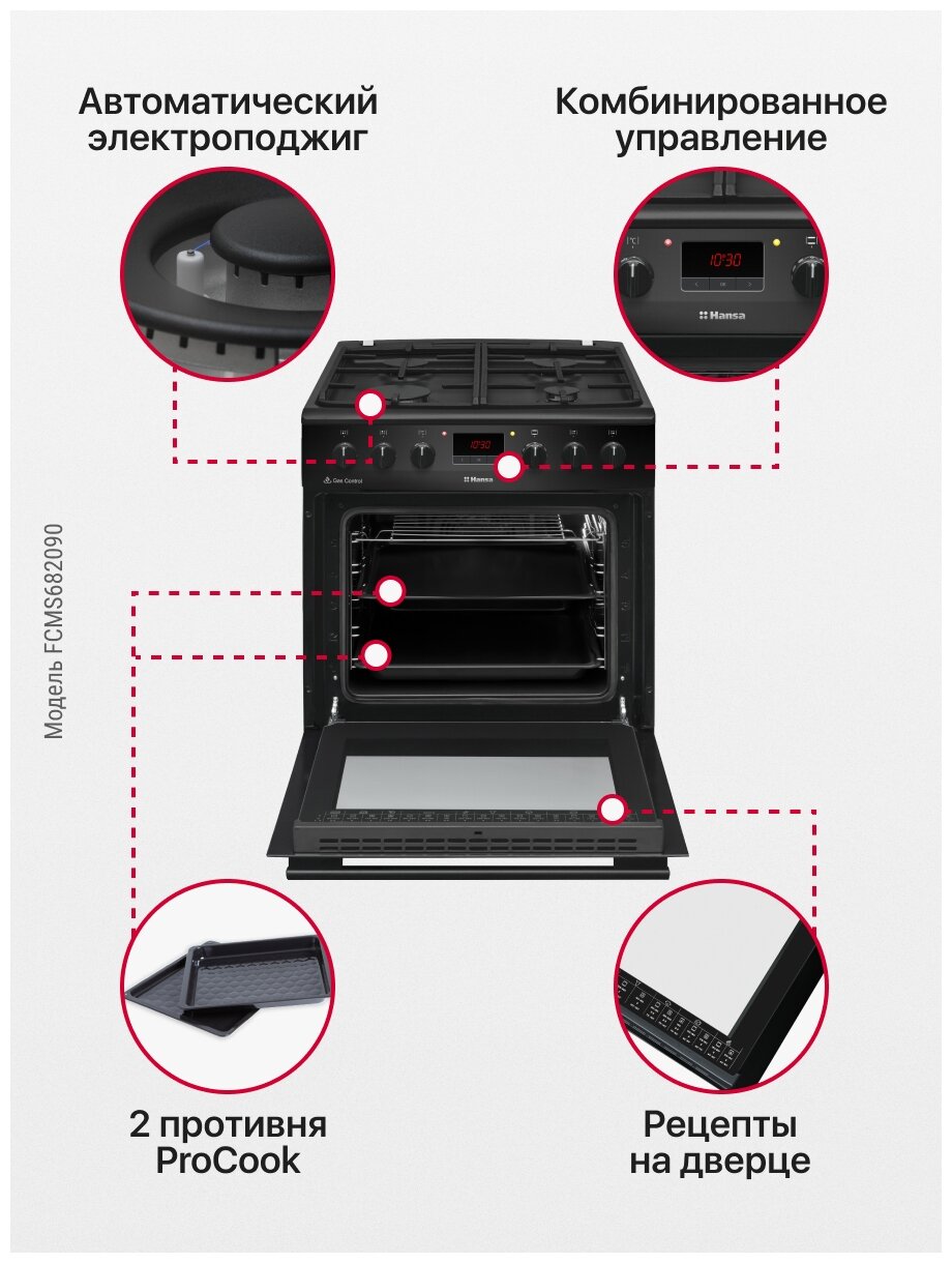 Type: gas, oven type: gas, hob type: gas, width: 51 cm, depth: 60 cm, number of burners: 4, electric ignition: hob, gas control: ovens, grill, design features: backlight
