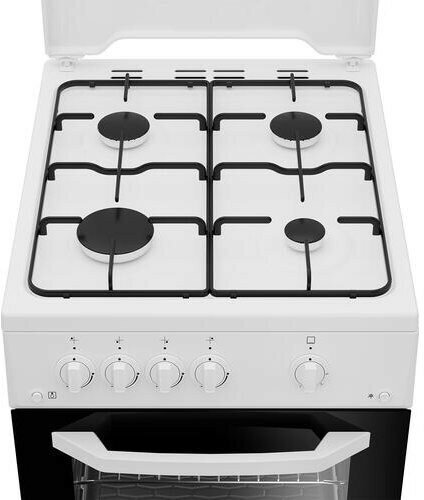 Type: gas, oven type: gas, hob type: gas, work surface material: enameled steel, width: 50 cm, depth: 60 cm, number of burners: 4, design features: oven light, storage drawer
