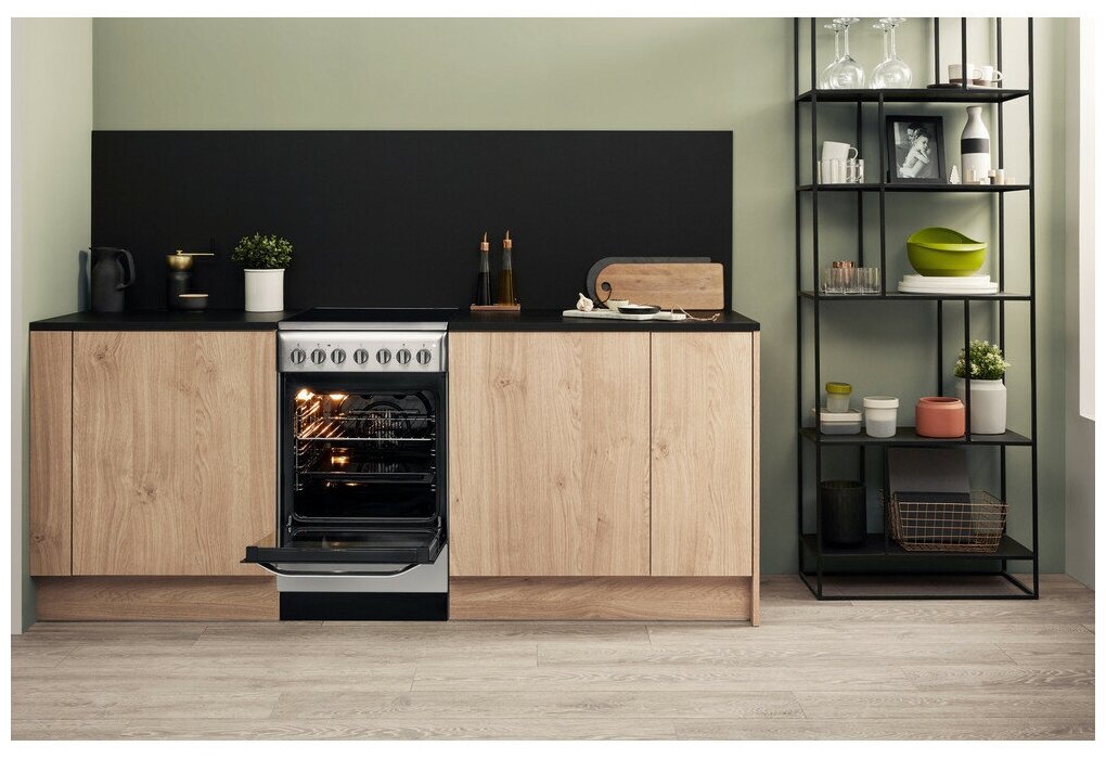 Type: electric, oven type: electric, hob type: electric, work surface material: glass ceramics, width: 50 cm, number of burners: 4, convection in the oven, grill, design features: