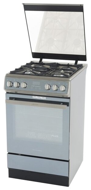 Type: combined, oven type: electric, hob type: gas, work surface material: stainless steel. steel, width: 50 cm, depth: 60 cm, number of burners: 4, electric ignition: hob + oven