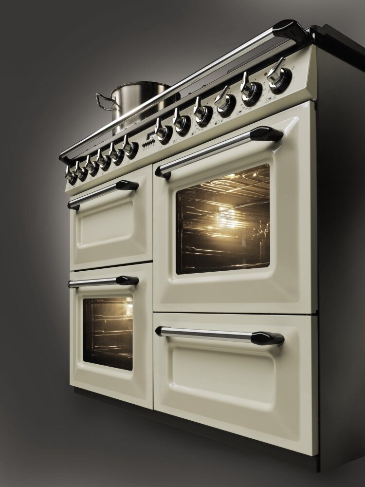 Display, additional oven, oven light, clock, utensil drawer