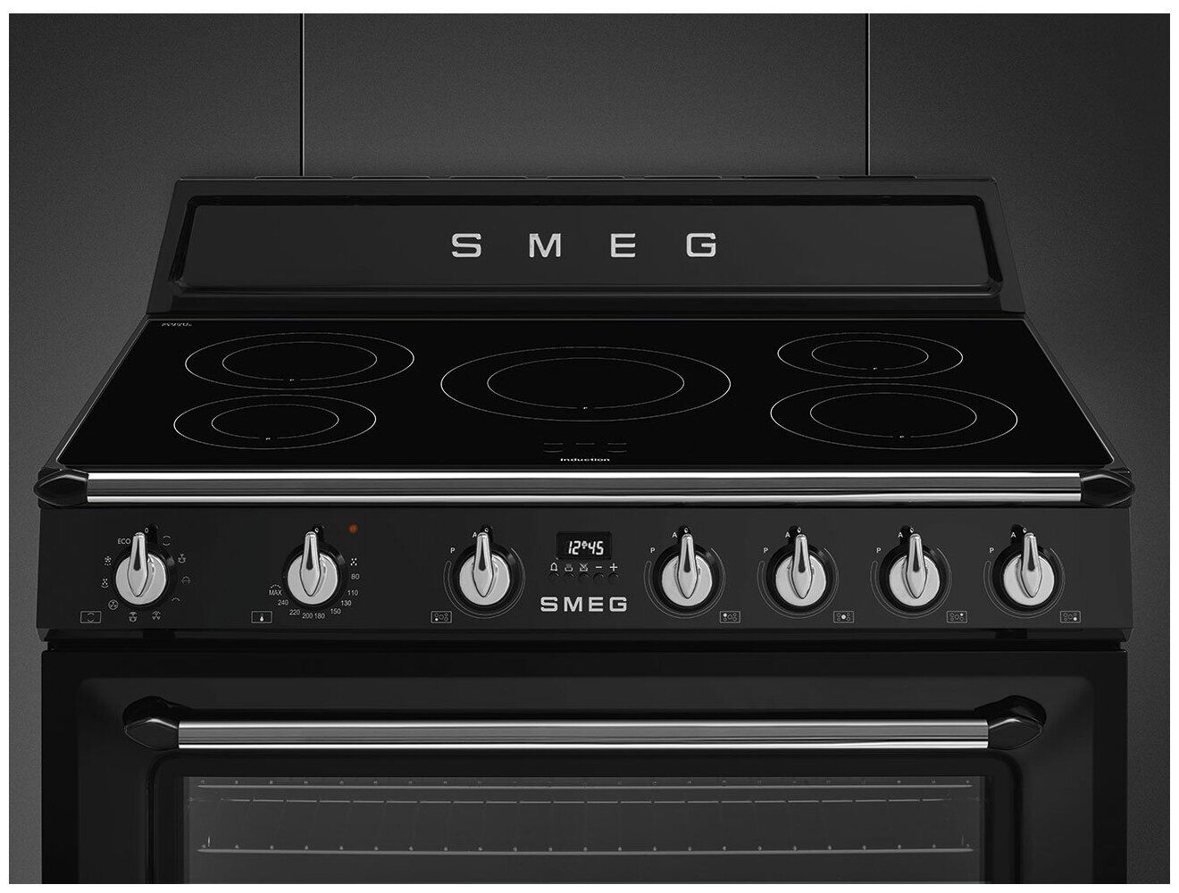 Spit, air cooling, display, oven light, clock, utensil drawer