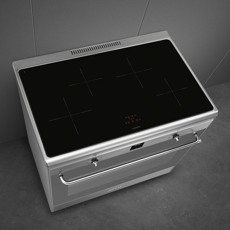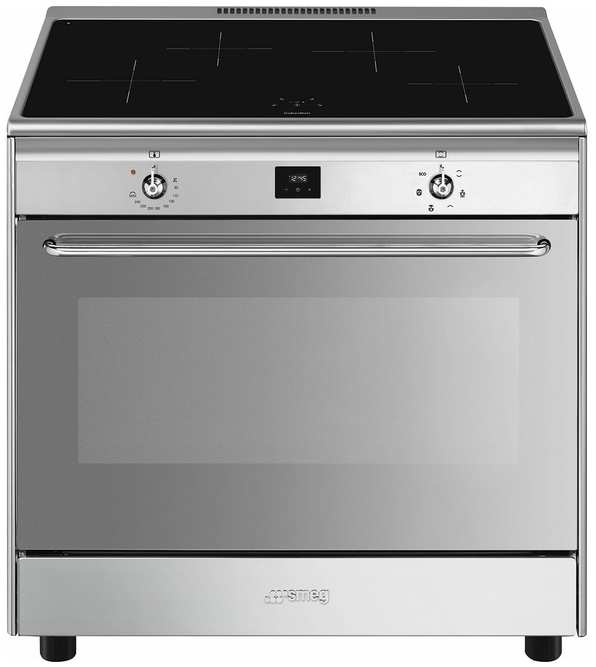 Type: electric, oven type: electric, hob type: induction, work surface material: glass ceramics, width: 90 cm, design features: display, additional functions: timer, thermostat