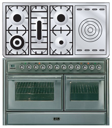 Type: gas, oven type: gas, hob type: gas, work surface material: stainless steel. steel, width: 120 cm, depth: 60 cm, number of burners: 5, electric ignition: hob + oven, gas control