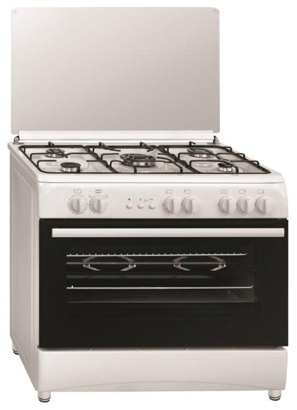 Type: gas, oven type: gas, hob type: gas, work surface material: enameled steel, width: 90 cm, depth: 60 cm, number of burners: 5, electric ignition: hob, gas control: du