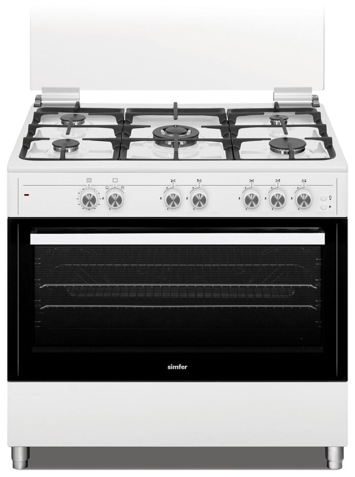 Type: gas, oven type: gas, hob type: gas, work surface material: enameled steel, width: 90 cm, depth: 60 cm, number of burners: 5, electric ignition: hob, gas control: du