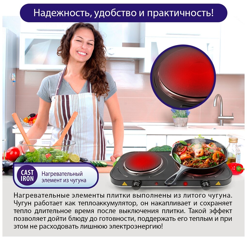Type: electric, oven type: no, hob type: electric, work surface material: Cast Iron, width: 45 cm, depth: 26 cm, tabletop, number of burners: 2, additional functions: thermostat