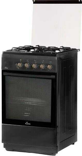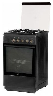 Type: combined, oven type: electric, hob type: gas, work surface material: enameled steel, width: 50 cm, depth: 60 cm, number of burners: 4, design features: backlight