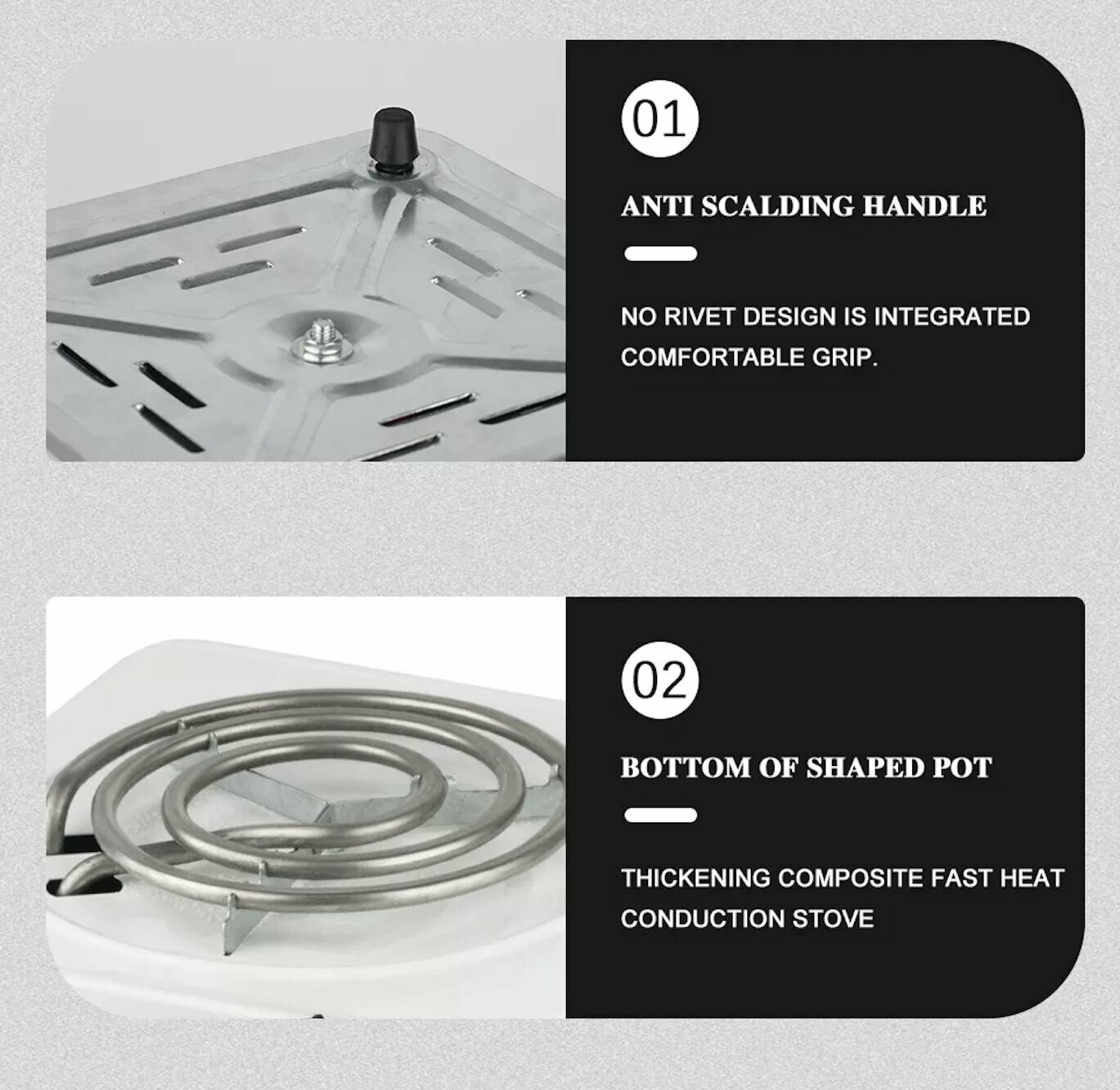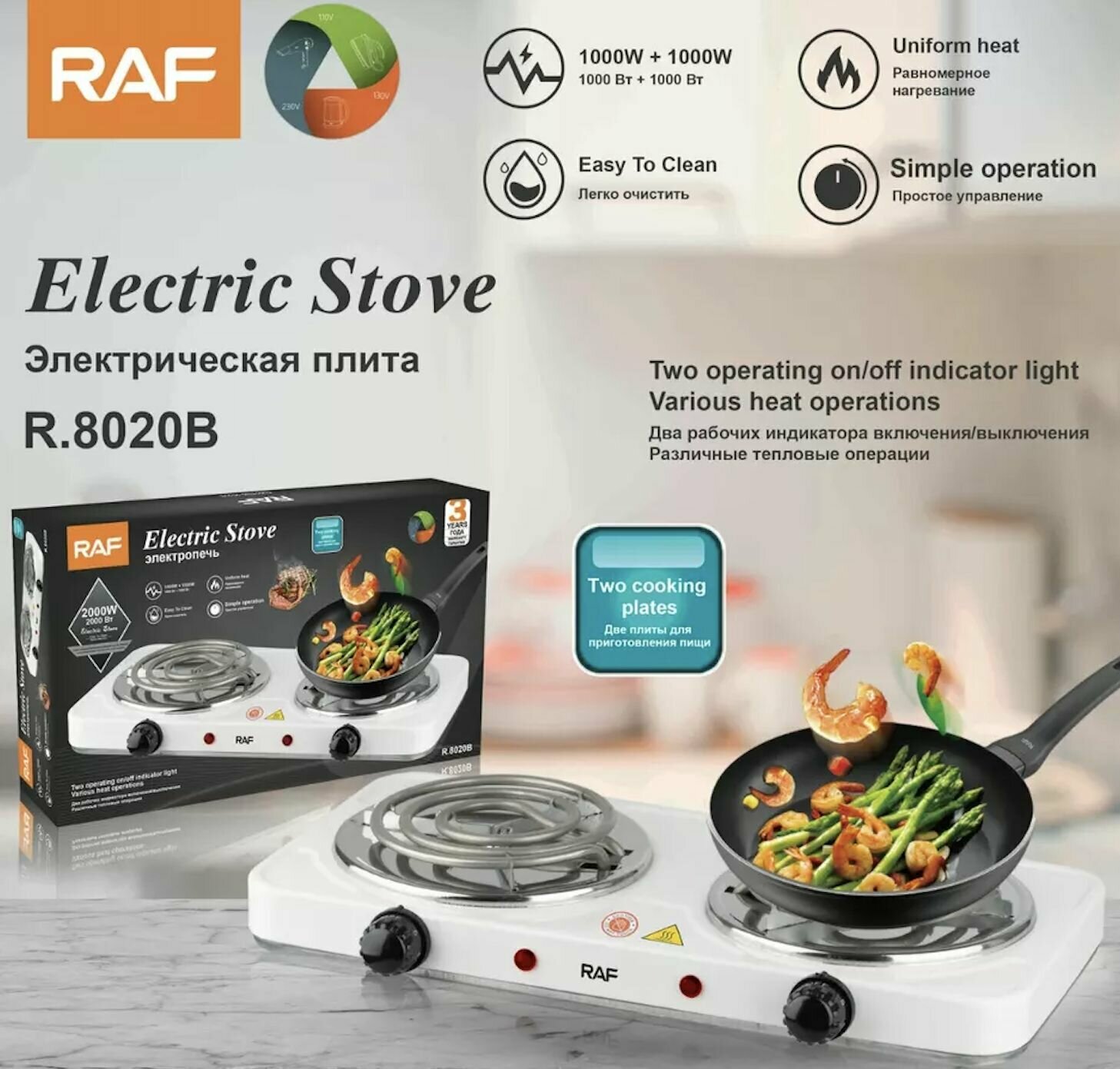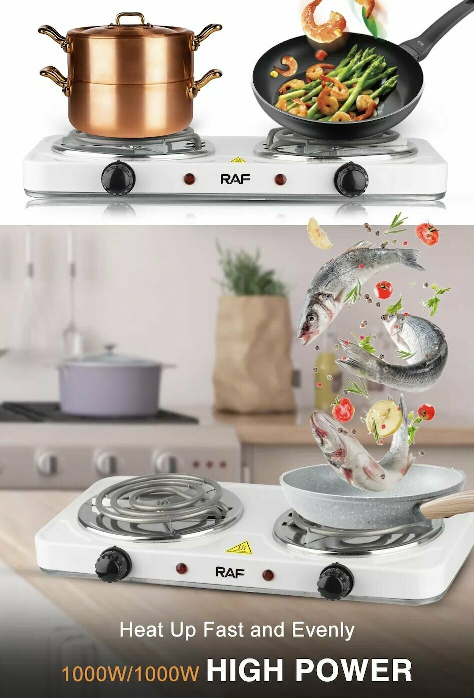 Portable RAF 2 burners spiral, 1000W+1000W, white