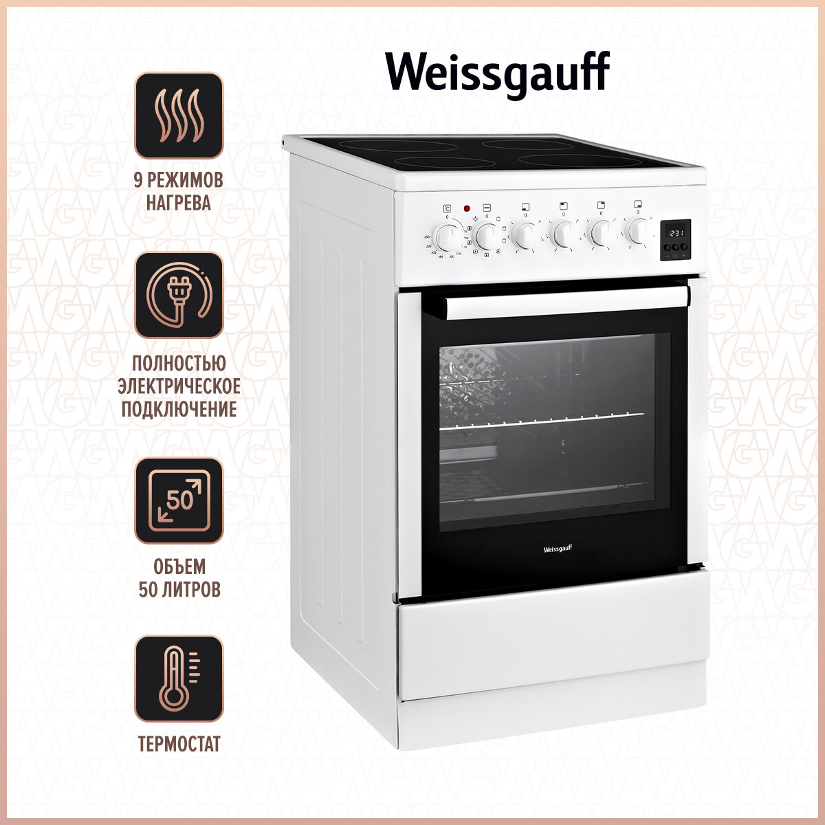 9 modes, oven power: 3.5 kW, burner power: 2x1.7 kW, 2x1.2 kW