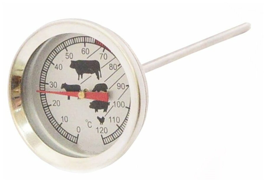 Type: thermometer, with probe, purpose: for food, maximum measuring temperature: 120 °C, case material: metal, device type: mechanical