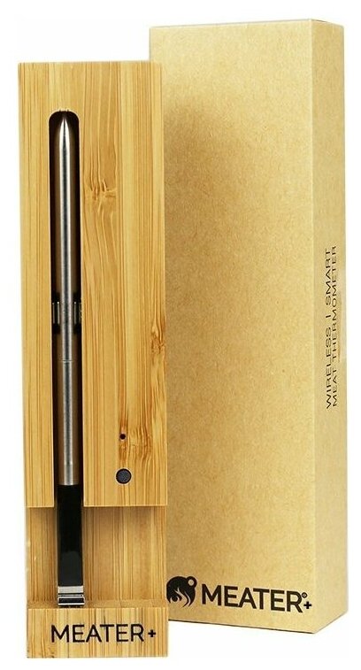 Bluetooth connection range up to 50 m; battery size: AAA; probe size: 13 x 0.6 cm; charging station material: wood