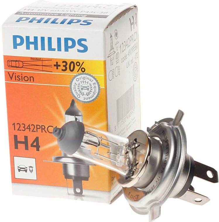 Halogen Philips Vision +30% 12342PRC1 H4 60/55W 1 pc.