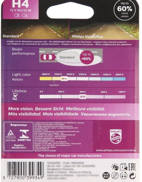 Halogen Philips Vision Plus 12342VPB1 H4 60/55W 1 pc.