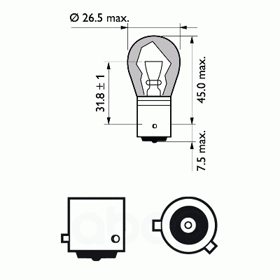 Type: incandescent, size: F2, PY21W, purpose: brake lights, rear turn indicators, front turn indicators, base: BA15s, BAU15s, BAU15s/19, luminous flux: 280 lm, power: 21 W, voltage: 12 V