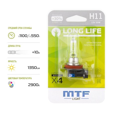 Car halogen lamp MTF Long Life HLL1211b H11 12V 55W 1 pc.