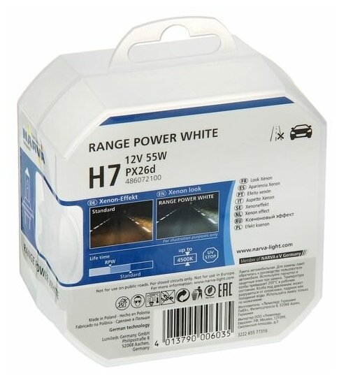 Car halogen lamp Narva Range Power White 486072100 12V H7 55W 2 pcs.