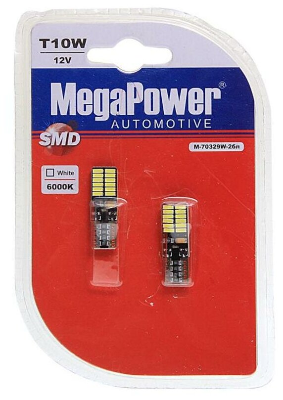 Car LED lamp MegaPower 70329W-2bl W5W T10W 12V 10W 2 pcs.