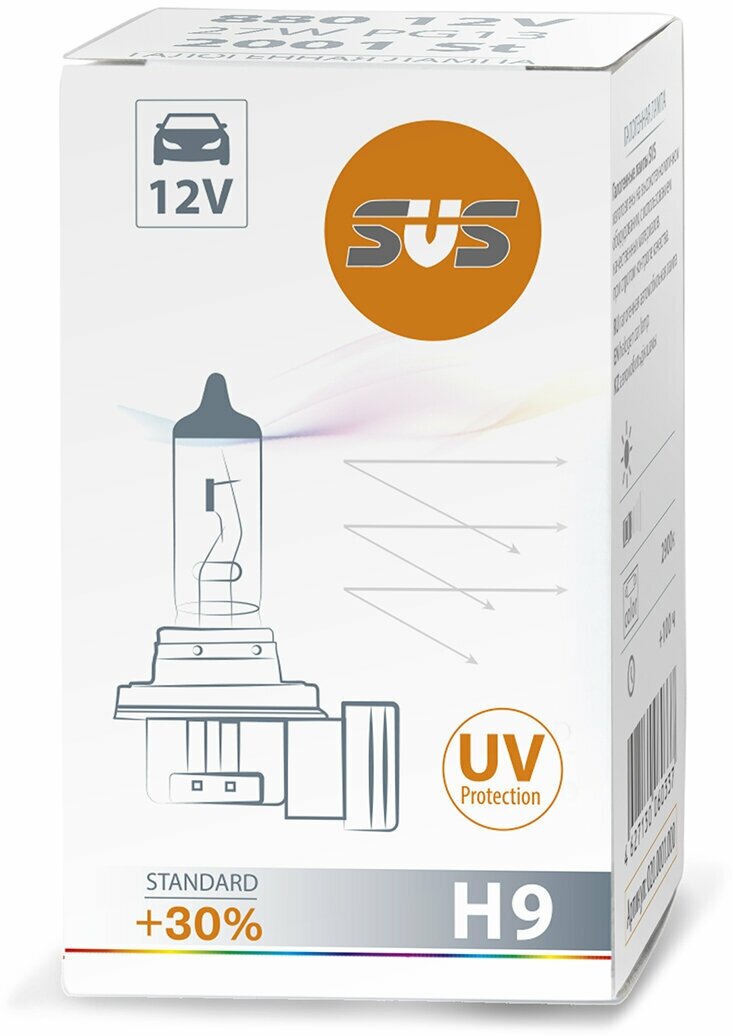 Halogen auto lamp SVS H9 12V 65W PGJ19-5 Standard +30% Manufacturer: SVS 0200137000