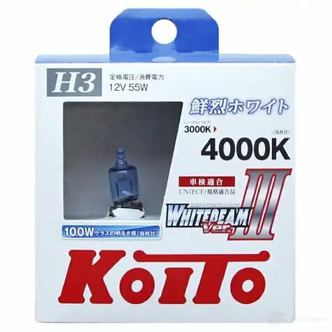 Car halogen lamp KOITO Whitebeam III P0752W H3 4000K 12V 55W 100W 2 pcs.