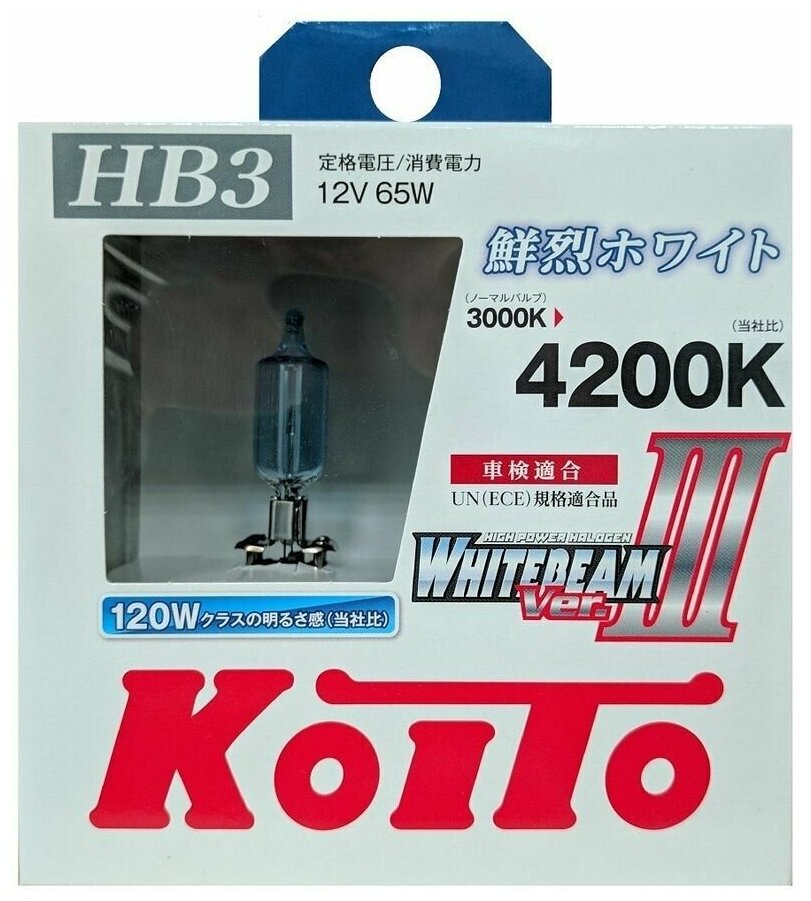 Car halogen lamp KOITO Whitebeam III HB3 P0756W 4200K 12V 65W 120W 2 pcs.