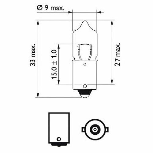 Type: incandescent, size: H10, H10W, purpose: side lights, parking lights, base: BA9s, luminous flux: 115 lm, power: 10 W, voltage: 12 V