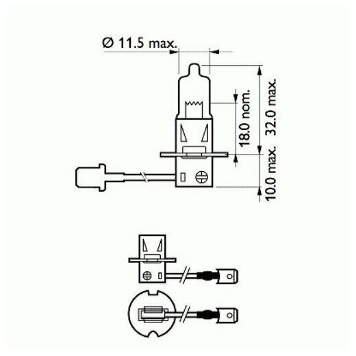Type: halogen, size: H3, purpose: low/high beam, high beam, socket: PK22s, luminous flux: 1450 lm, power: 55 W, voltage: 12 V