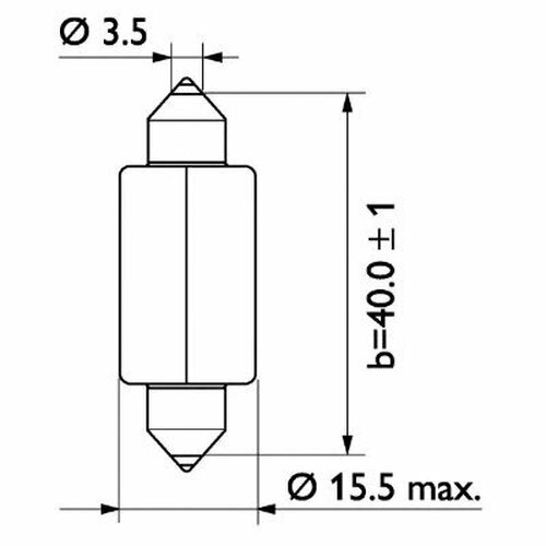 Type: incandescent, size: C3W, T15, purpose: marker lights, license plate lighting, base: SV8.5, power: 15 W, voltage: 24 V
