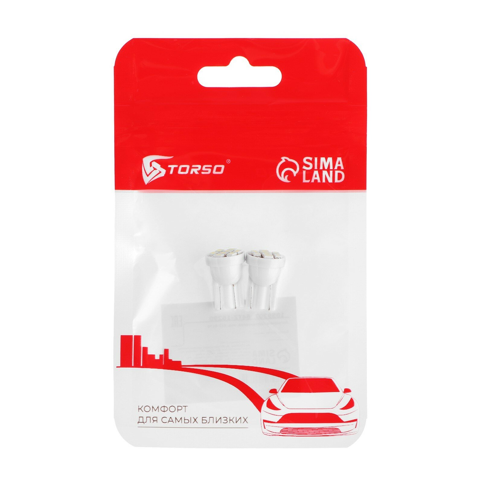 LED car lamp TORSO T10 W5W, size, 12 V, 8 SMD-3528, 2 pcs, white light