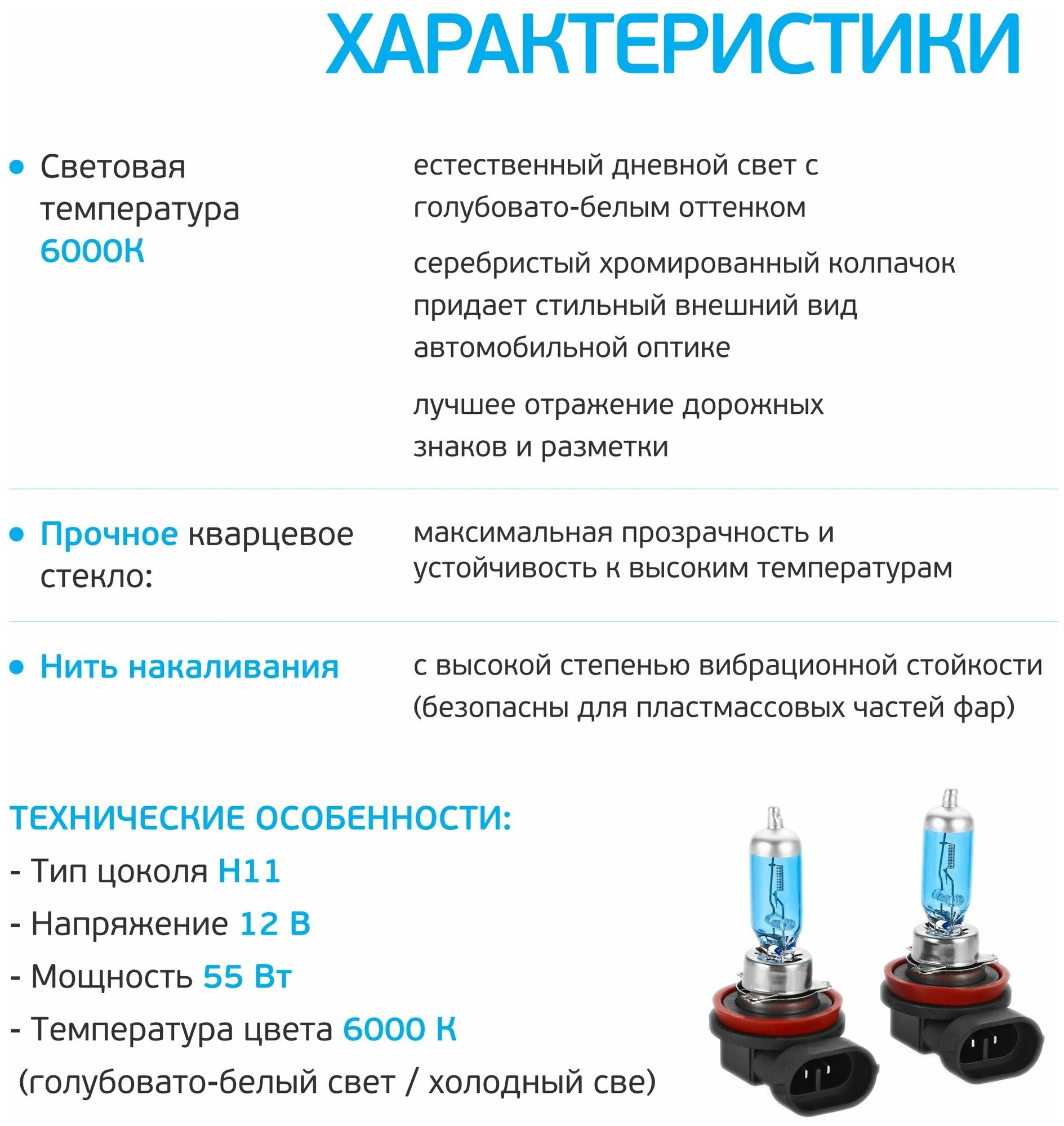 Type: halogen, size: H11, purpose: low/high beam, fog lights, For low/high beam, For fog lights, socket: PGJ19-2, power: 55 W, voltage: 12 V